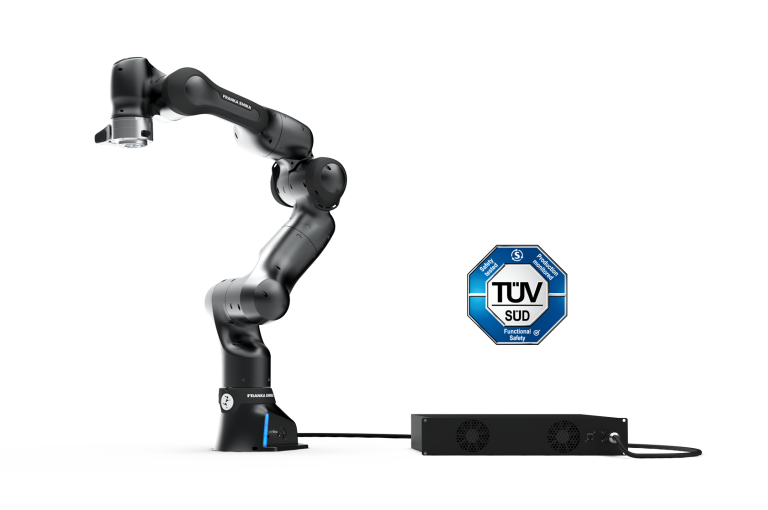 Franka Production 3’s robot system includes the Arm and its Control. The force sensitive and agile Arm features 7 DOF with torque sensors at each joint, industrial-grade pose repeatability of +/- 0.1mm and negligible path deviation even at high velocities. It comes with a payload of 3 kg, a reach of 855 mm and a workspace coverage of 94.5 %.